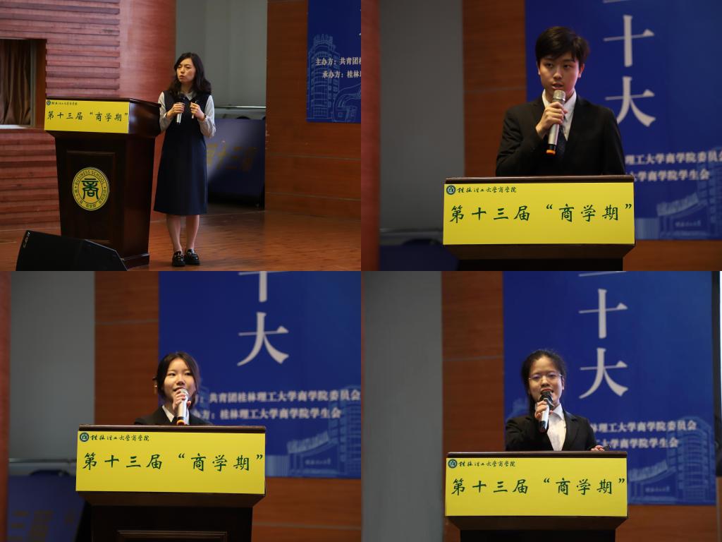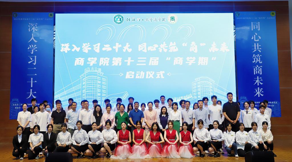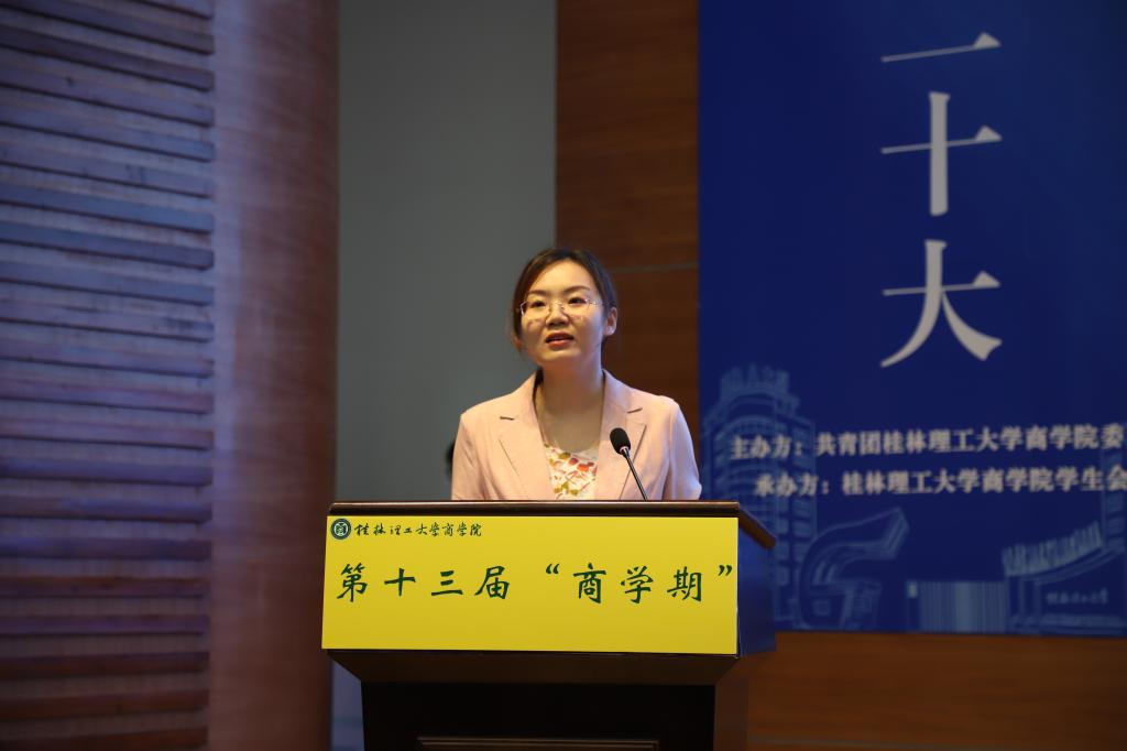 启动仪式上,学院专业学科竞赛优秀指导教师罗薇向大家作大学生学科竞赛指导经验分享,全国大学生社会实践重点团队学生代表李论、全国高校商业精英挑战赛品牌策划竞赛优秀团队学生代表梁思萍、桂林市优秀共青团员、学校“自强之星”唐艺珊等团队及个人代表讲述了她们“学在桂工”、励志成长、踔厉奋发的青春故事。