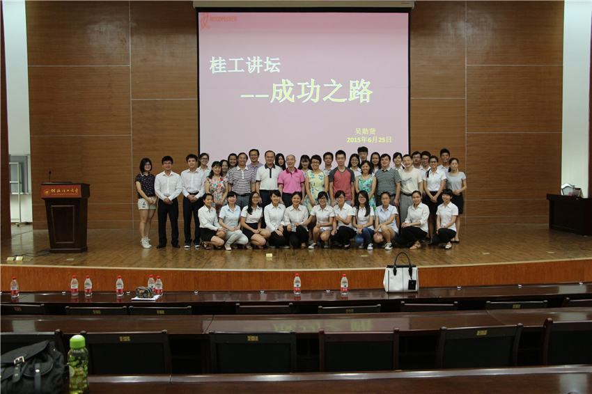 625日下午,应管理学院及人力资源管理系的邀请,啄木鸟医疗器械有限公司创始人、董事长吴勋贤应邀作客桂工讲坛,在屏风校区图书馆报告厅作了题为《成功之路》的专题讲座。讲座由管理学院学生会主席、人力12-2班学生李心愿主持,管理学院负责人及200余名师生到场听讲。