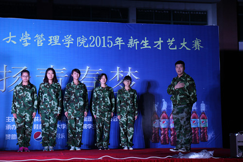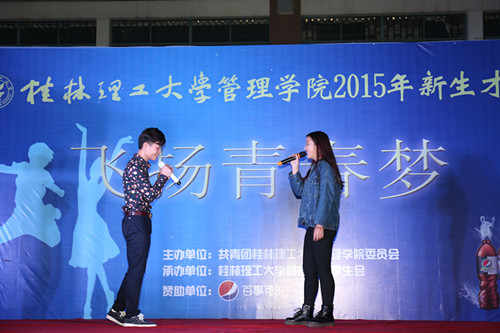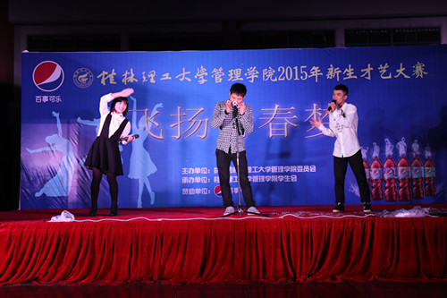 11月3日晚,管理学院2015年“飞扬青春梦”新生才艺大赛在雁山校区三栋广场举行。校学工部(处)副部(处)长冯广辉、理学院党委副书记孙巍、管理学院党委副书记张瑞以及各兄弟学院辅导员老师出席了本次比赛并担任评委,各兄弟学院的学生会主席以及15级全体新生一起观看了比赛。