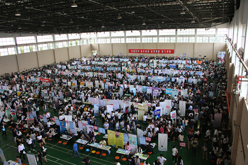 11月7日,我校2016届毕业生秋季“双向选择洽谈会”(以下简称“双选会”)在雁山校区体育训练馆成功举行。有自北京、福建、广东、海南、河北、黑龙江、湖南、江苏、江西、山东、上海、西藏、浙江、重庆、广西等16个省市的250多家企事业用人单位到会,我院积极组织2016届毕业生参会,学院院长连漪,党委书记白永生,副院长江晓云、蒙永亨,党委副书记张瑞亲临现场看望用人单位代表,了解用人单位的需求情况,并与学生亲切交流,了解学生的就业定位和现场应聘情况,为毕业生提供就业指导服务