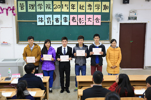 会上,曾丽萍老师宣读了《管理学院2015年秋季学期体育赛事表彰决定》,与会老师为优秀运动员、优秀工作者、优秀志愿者、优秀啦啦队班级等获奖个人和集体颁奖。