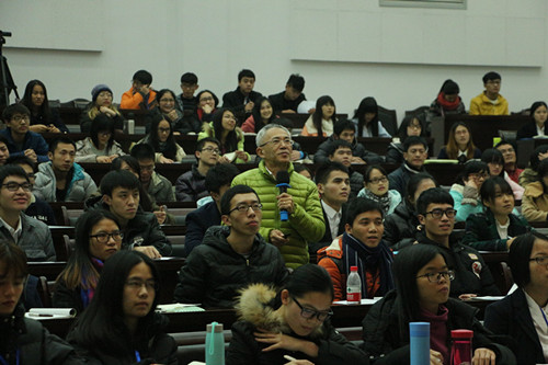 报告会第二阶段为学生交流专场。周南教授走进观众席,走到同学们的身边,以亲和的语调用“身份上的中国人和精神上的中国人有何区别?”这一问题引入报告的主题。接着,周南教授讲述了他“走出去”和“走回来”的故事。他引用老子《道德经》中“不居功,不恃能,不主宰”的观点,感叹为师及做人之道。周教授还用生动的实例与同学们分享了美国强生泰诺应对品牌危机、坚持为顾客考虑、积极解决危机从而获得重生的故事,以此启示同学们持守善道,转危为安,赢取顾客信任,收获盈利并非难事。周教授以自身经历及研究《道德经》的独到见解将学术和人格塑造相结合,引经据典,开拓我校师生学术思维的同时也向我校师生进一步弘扬了中国传统文化。