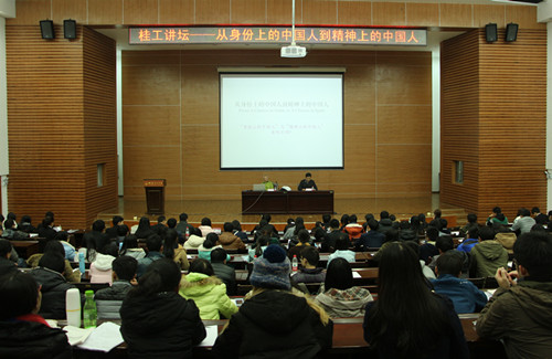 12月15日,教育部聘任的企业管理学科第一位长江学者、香港城市大学市场营销学系周南教授莅临我校桂工讲坛,在屏风校区7307教室和图书馆报告厅为我校师生带来了题为“只有走自己的路,才能成为‘自己’”和“从身份上的中国人到精神上的中国人”两场主题报告。报告会分别由学院院长连漪和学院党委副书记张瑞主持。