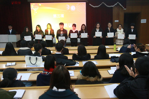 结业典礼在激昂的《光荣啊,中国共青团》中开幕。首先,学院团委副书记曾丽萍老师宣读优秀学员表彰文件,学院党委副书记张瑞老师为优秀学员颁发荣誉证书。随后,各学生组织的学员代表上台发言,他们纷纷表示此次团校培训班收获很大,不仅明确自身的责任和使命,更加增强了责任意识和服务意识,同时也提高了政治理论水平和业务能力水平,更加明确了今后的努力方向,坚定了要努力成为一名“优秀学生干部”的决心。