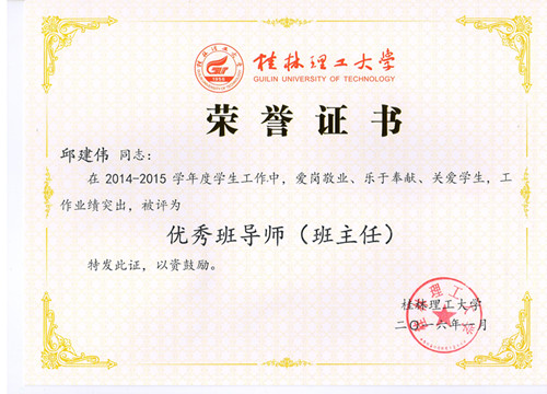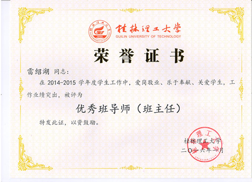 为深入贯彻落实《关于进一步加强和改进大学生思想政治教育的意见》和教育部《关于加强高等学校辅导员班主任队伍建设的意见》文件精神,一直以来,我院高度重视辅导员、班主任队伍建设,通过召开专题会议、加强培训等方式加强辅导员、班主任队伍建设。2014-2015学年,我院广大辅导员、班主任爱岗敬业、甘于奉献,为促进我院大学生健康成长、成才做出了突出贡献,涌现出一批先进个人,其中刘黔川、雷绍湖、贾璐、沈鸿、赵昱、邱建伟等6名班主任获得2014-2015学年度学校“优秀班导师”荣誉称号,学院2014级辅导员李鑫同志获得2014-2015学年度学校“优秀辅导员”荣誉称号。