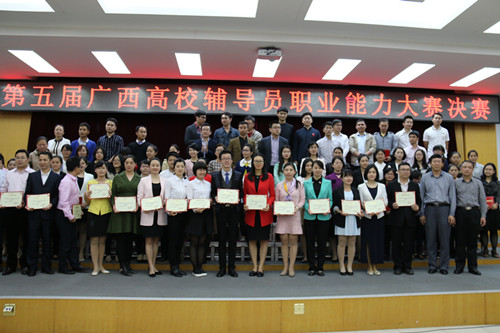 3月21-23日,由自治区高校工委、自治区教育厅主办的第五届广西高校辅导员职业能力大赛初赛、决赛在广西高校辅导员研修基地(广西大学)举行。来自全区63所高校的88名选手参加了比赛角逐,我校推荐的两名辅导员以初赛出色的表现双双杀入决赛。经过决赛环节的激烈比拼,我校辅导员决赛取得总得分排名全区高校第二的好成绩,其中我院辅导员柴靓老师获得二等奖。