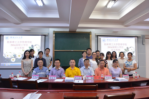 6月1日,学院在屏风校区7206会议室和7311教室举行2013级研究生毕业论文答辩会。广西师范大学陆奇岸教授和桂林电子科技大学蔡翔教授分别担任两个答辩小组主席,学校副校长肖岳峰教授、总会计师曾繁荣教授,我院院长连漪教授等作为答辩评委参加了答辩会。