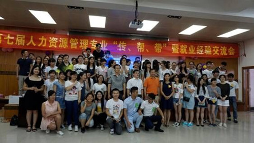 6月7日,人力资源管理专业在屏风校区体育馆附楼五楼党校教室举办了第七届“传、帮、带”暨就业交流会。本次活动由人力13级学生承办,人力14级学生协办,活动的主旨是为人力专业学生提供一个跨年级的交流机会,帮助低年级学生加深对本专业的认识和专业发展信心。人力教研室全体老师和人力12级的优秀学生代表参加了本次交流会,并且还邀请了人力05级学长谢元伟,10级学长陈文甫、李怀海等优秀毕业生代表出席,用他们的亲身经历帮助学弟学妹们明晰自己的发展道路。