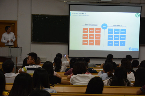 随后, GUT创新学堂V1.0研发合作企业——骐通科技公司覃卢幸总经理给为师生分别做了该学习平台的教师端及学生端使用培训。陈建新老师就GUT创新学堂V1.0在营销应用2013级专业实习中具体应用做了布置。