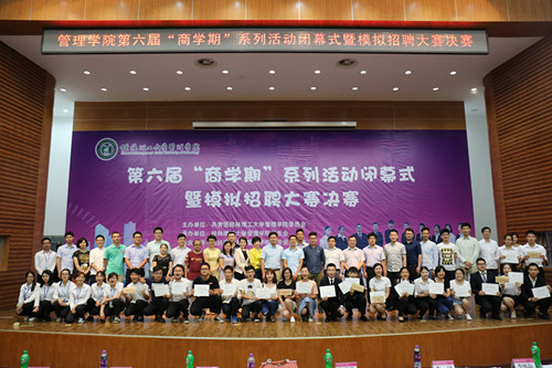6月14日晚,学院第六届“商学期”系列活动闭幕式暨模拟招聘大赛决赛在屏风校区图书馆隆重举行。学校学工部(处)、学校团委、各兄弟学院以及学院相关负责人和专业教师共同出席了本次闭幕式。桂林市啄木鸟医疗器械有限公司、桂林洁伶工业有限公司、桂林万达广场商业管理有限公司等六家社会企业人力资源部负责人出席闭幕式并担任模拟招聘大赛决赛的专家评委。