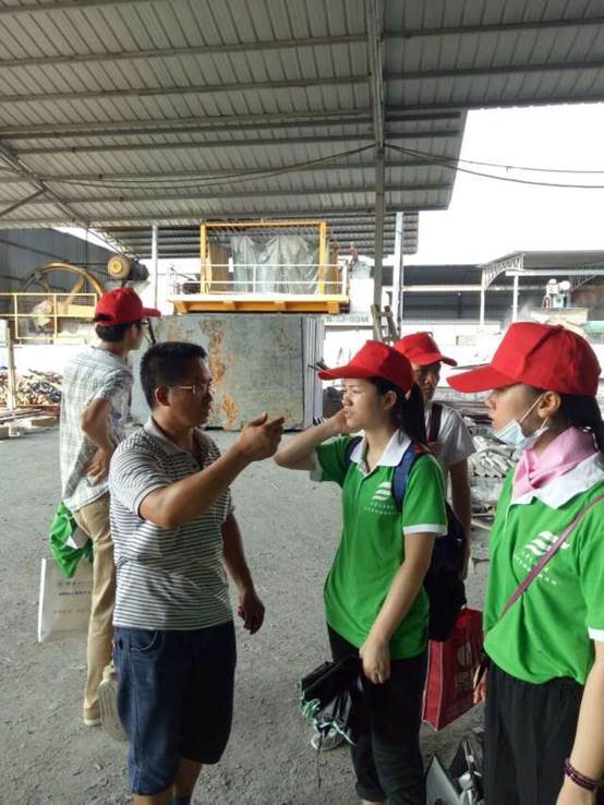 参观了石材加工厂后,我们与企业的财务主管在办公室进行座谈活动,在谈话中我们了解了广西桂灌石材有限公司的企业现状,国内市场与国外市场,对于互联网的运用,融资方式,销售方式,政府的扶持情况等,企业未来五年的规划主要是希望石材市场活跃,以此来带动灌阳县的其他产业的发展,同时发展扩大企业,进军欧美市场。工作人员全程十分热情地为调研组成员解疑答惑,让实践团成员收获了许多在课堂学不到的知识,拓宽了自己的视野。