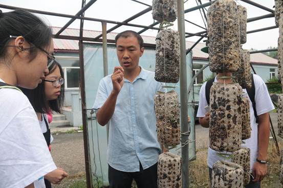 黑木耳种植大户向实践队员介绍自家黑木耳的种植及销售情况