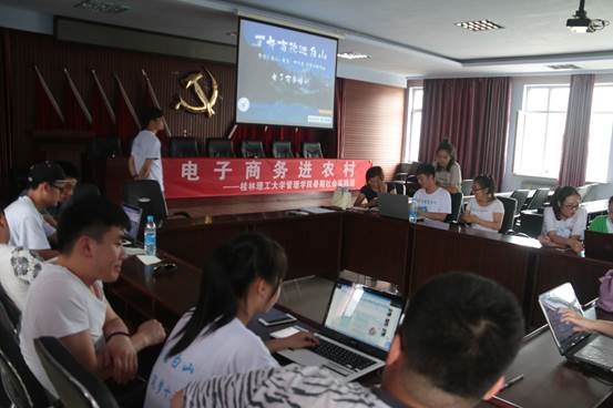 培训内容分为调研情况介绍、农特产品电子商务推广和电子商务服务站发展与建设三个部分。培训过程中,实践队员将生涩难懂的课本知识口语化,借助桂林及全国农村电子电子商务发展的成功经验,以当地黑木耳推广为例,为当地居民介绍农特产品电子商务推广渠道和当地电子商务服务站的优化渠道,激发当地居民参与电子商务的热情。同时为了更好地推广“电子商务进农村”,实践队还开展了“一对二”培训——手把手教授开网店,队员们从店铺开设,店铺装修,商品管理,店铺推广等几个方面出发,通过手把手、一对一教学,向当地居民演示网店运营的基本知识,帮助当地居民深入了解电子商务的相关知识。