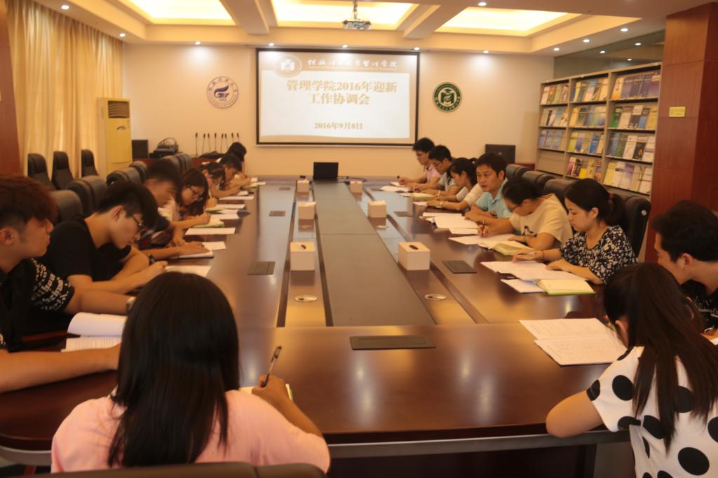 为保障2016年迎新各项工作顺利开展,9月8日,我院于7206会议室召开2016年迎新工作协调会议。学院党委副书记张瑞副主持会议,学院全体辅导员以及学生会、易班工作站暨传媒中心、党务中心、社管中心、励合社等学院学生组织主要负责人参加会议。