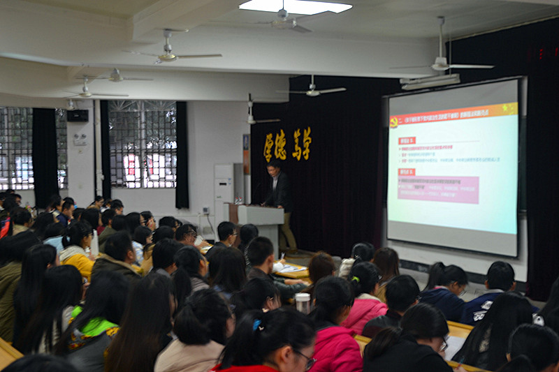 为进一步加强党风党纪建设,深入学习贯彻党的十八届六中全会精神,不断深化“两学一做”学习教育效果,2016年11月8日下午16:00,我院在屏风校区9栋101教室举办了“两学一做”学习教育专题党课,题为《全面从严治党开启新征程--十八届六中全会公报解读》。本次党课由我院党委副书记张瑞老师主讲。学院全体第一书记、学生党员参加了此次党课。