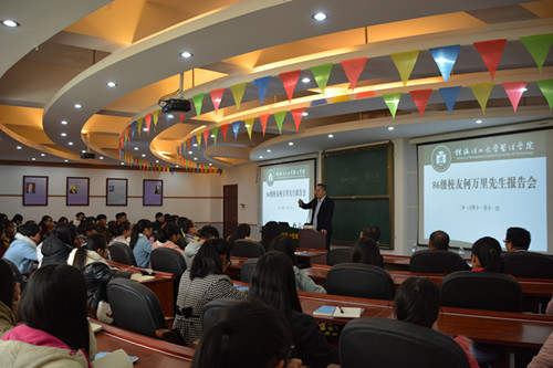 11月11日,时值母校甲子校庆,我校86级校友、湖北省旅游酒店投资管理专家、国内现代产业园开发运营领军人物、融园投资控股集团董事长何万里先生回访母校,与老师、同窗共叙昔日情谊,与学弟学妹分享求学与工作经历,与我校师生进行了精彩的交流。报告交流会由学院副院长蒙永亨主持。