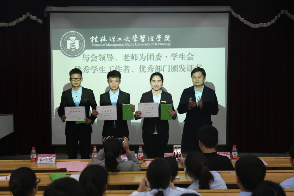 为深入总结过去一个学期的工作,表彰一批优秀的学生干部,促进学院团学工作上台阶、上水平。1月5日晚,我院在屏风校区9401教室举办了管理学院2016-2017学年度秋季学期学生组织述职暨表彰大会。学院党委副书记张瑞、团委副书记曾丽萍、易班工作站暨传媒中心指导老师贺旋、学院团委白宇航出席了本次会议,学院团委•学生会以及易班工作站暨传媒中心全体成员参加了本次会议。