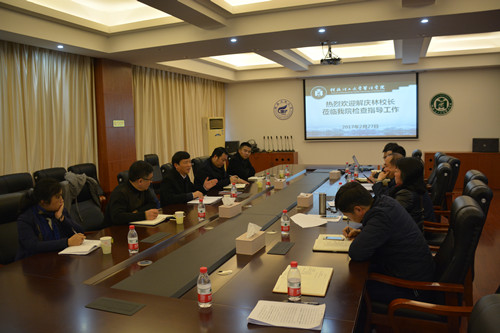 2月27日下午,校长解庆林在校办、校团委、科技处、发展规划与教学质量监控中心等部门领导陪同下到我院检查指导工作,并在屏风校区7206会议室听取了我院党政领导班子关于开学准备、“双一流”建设的思路及新学期工作计划的汇报。