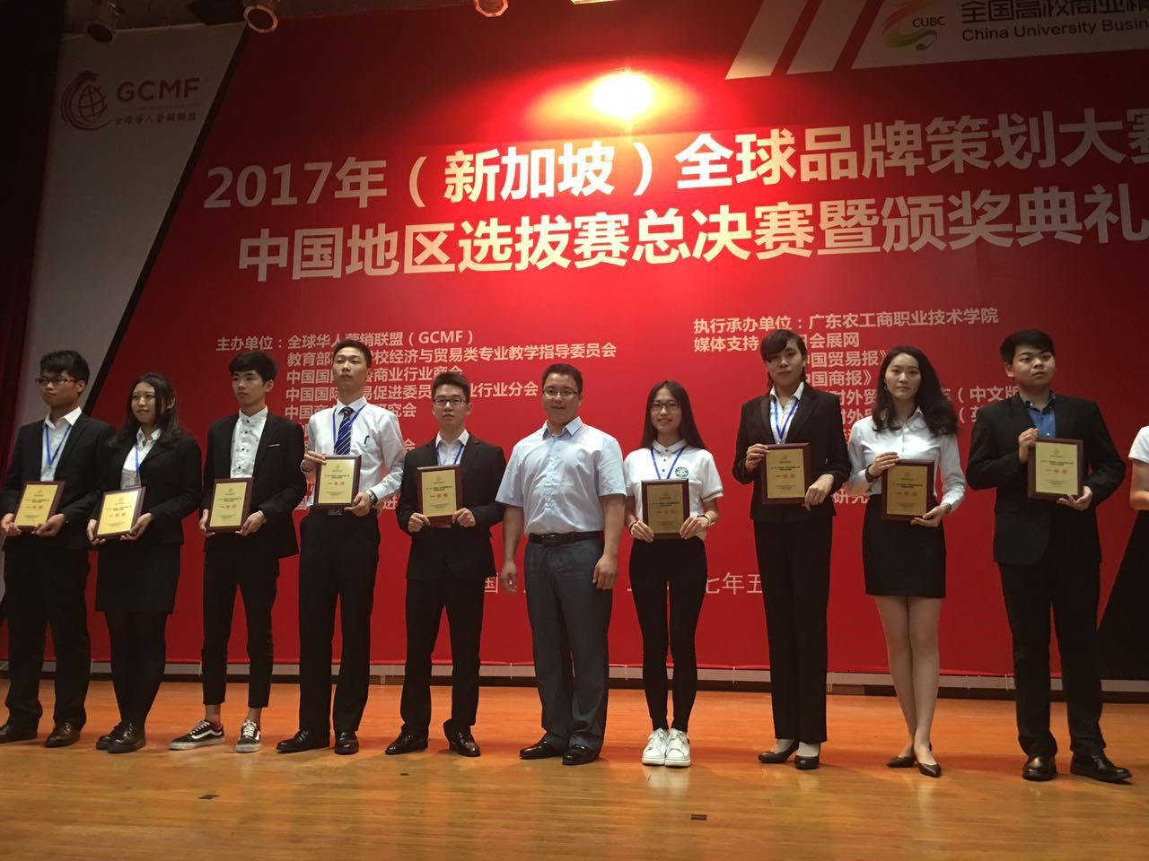 2017年5月6-8日,由全球华人营销联盟(GCMF)、中国国际贸易促进委员会商业行业分会、教育部高等学校经济与贸易类专业教学指导委员会、中国国际商会商业行业商会和中国商业文化研究会共同主办,第六届全球品牌策划大赛中国区决赛在广州圆满结束。本次大赛分初赛和决赛两个阶段,前后历时五个月,共有来自全国23个省市自治区、直辖市的300多支参赛队伍参加。经过层层选拔,最终有山东大学、北京工商大学、福州大学、上海对外经贸大学和beats365(中国区)-唯一官方网站等84所高校的151支团队入围中国地区选拔赛总决赛。决赛阶段,由我院市场营销系梁健爱、尧丹俐和周晓睿三位老师指导,市场营销专业刘日威、黄泳琳、李竹君、覃焕玲、陈灵利、邱先奎和乔阳阳7名同学组成的《悦太极品牌策划》和《金顺昌品牌策划》2支参赛团队均夺得2017年全球品牌策划大赛中国区决赛一等奖。其中,周晓睿老师指导的《金顺昌品牌策划》团队成功晋级八强,获得代表中国大陆地区参加2017年(新加坡)全球品牌策划大赛总决赛的资格。