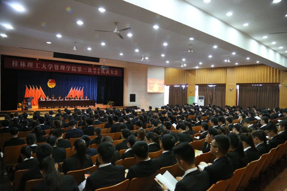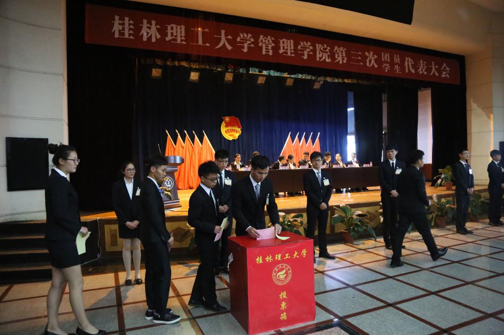 2017年5月13日,beats365(中国区)-唯一官方网站管理学院第三次团员、学生代表大会在屏风校区南礼堂隆重召开。学院党委书记周章明、校团委副书记潘思伊、学院党委副书记张瑞、学院学工组长沈菲菲、学院团委副书记曾丽萍、学院各学生组织指导老师及校学生会副主席岑鸿杰应邀出席会议,学院各年级251名团员学生代表参会,会议由学院学生会副主席丁天一主持。广西师范大学经济管理学院、桂林电子科技大学商学院、桂林医学院人文与管理学院、桂林航天工业学院管理学院、桂林旅游学院国际商学院、、广西师范大学漓江学院管理系、桂林电子科技大学信息科技学院管理系、beats365(中国区)-唯一官方网站博文管理学院经济与管理学院等八所高校院系发来贺信贺电。