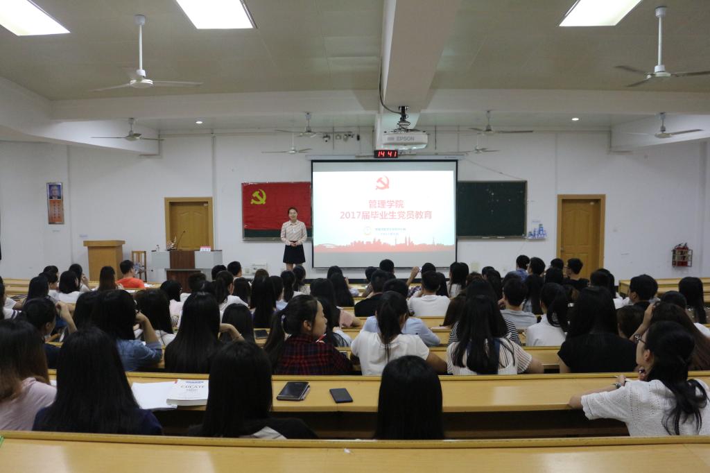 为了加强毕业生党员教育,提高毕业生党员的思想觉悟、党员意识、党性修养和社会责任感,让每一个党员在工作岗位上继续发挥先锋模范作用,5月23日下午,我院在教九栋9201教室召开了2017届毕业生党员教育大会。整个教育大会分为三个环节:一是给毕业生党员上党课,二是重温入党誓词,三是开展党组织关系转移工作培训。学院学工组长沈菲菲与在校的毕业生党员参加了此次会议。会议由学生党务中心干部何果主持。