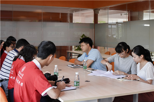 电子商务服务中心负责人与团队成员交流