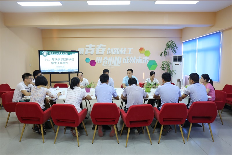为进一步厘清思路、明确重点、凝聚共识,科学谋划下半年学生工作,9月2日,学院在创新创业路演中心(屏7401)召开2017年秋季学期学生工作务虚会,学院党委书记周章明、学院党委副书记张瑞,以及学院全体学工干部参加了会议。会议由张副书记主持。