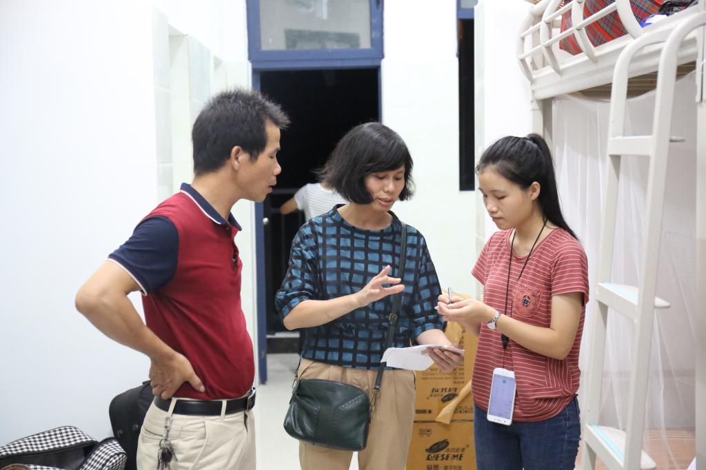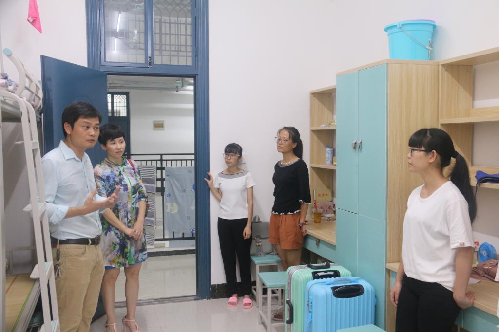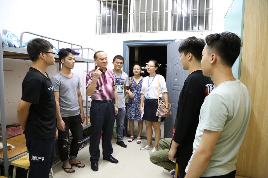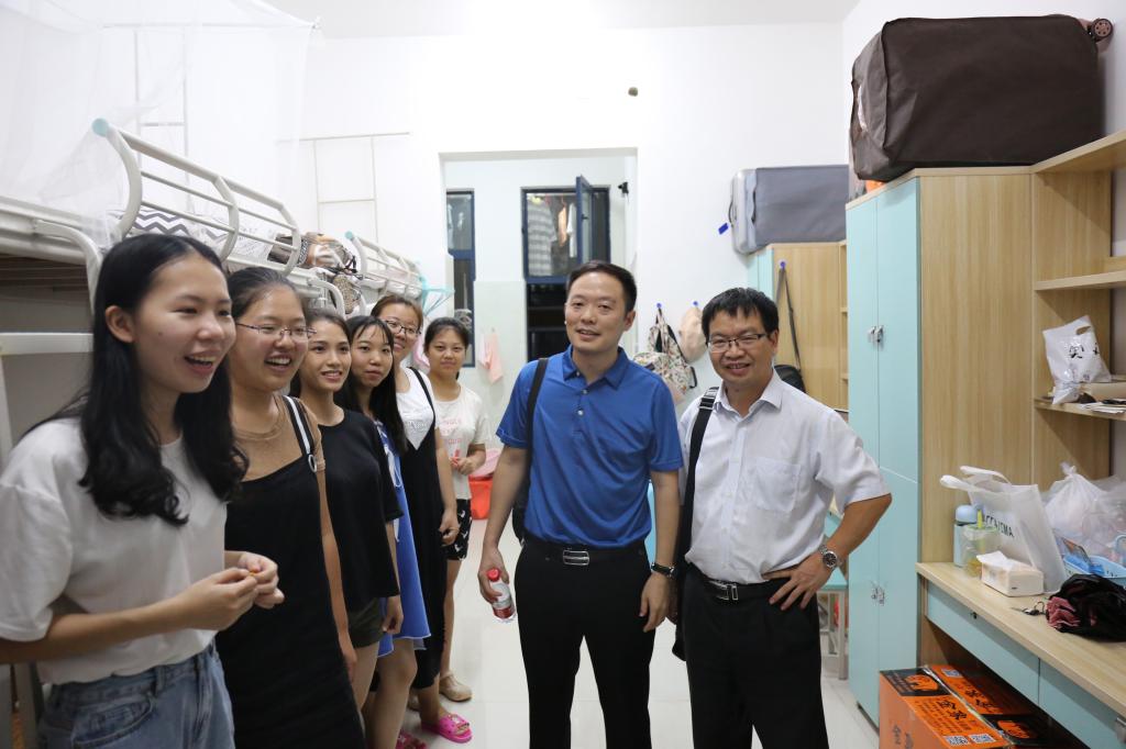 9月10日下午,我院新生接待工作已基本结束。为了解新生情况、帮助新生尽快适应大学生活,晚20:00左右,在2017级新生辅导员的带领下,我院领导一行人走访了新生宿舍,与新生们进行了亲切交谈,仔细询问新生进校后在饮食、住宿等多方面的生活情况,鼓励新生逐步提高自理、自立的能力,希望新生们以积极的心态和良好的面貌尽快适应大学校园生活,并强调了宿舍用电安全、外出交通安全、人身财产安全等安全事宜。