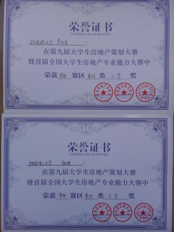 2017年10月26日第九届 “全国房地产策划大赛华南赛区复赛”落下帷幕。大赛有近150所高校,4000余名学生报名参加。大赛于2017年9月底举行校内选拔赛,10月底在各区域承办高校举行区域复赛,大赛全国总决赛定于2017年12月中旬举办。华南赛区经过校内选拔赛、网络初评,有19所高校,共30支队伍入围赛区复赛。最终我院房地产开发与管理专业的陈龙、李开军、杨胤、段园园、杨晓等5名学生组成的团队,在教研室主任何里文老师的带领下经过5个多月的不懈努力,获得此次大赛华南赛区复赛的全国三等奖。