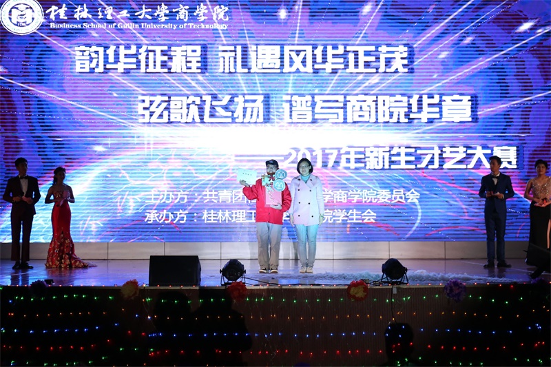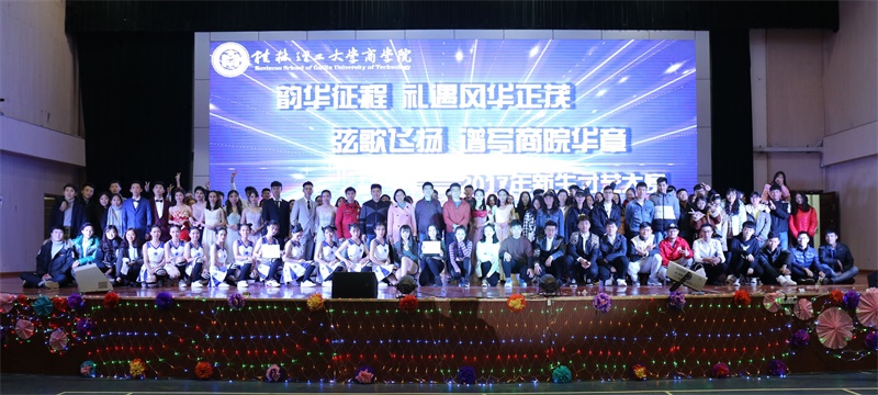 韵华征程,礼遇风华正茂;弦歌飞扬,谱写商院华章。为了让新生更好的适应大学生活,融入集体,丰富校园文化生活,得到展示自我的舞台。我院于11月24日在雁山校区体育馆举办了2017年新生才艺大赛。我院学工组长沈菲菲,年级辅导员贺旋、白宇航、张雪及肖静出席决赛并担任决赛评委。学校各二级学院学生会主席及文艺部部长应邀出席本次比赛。