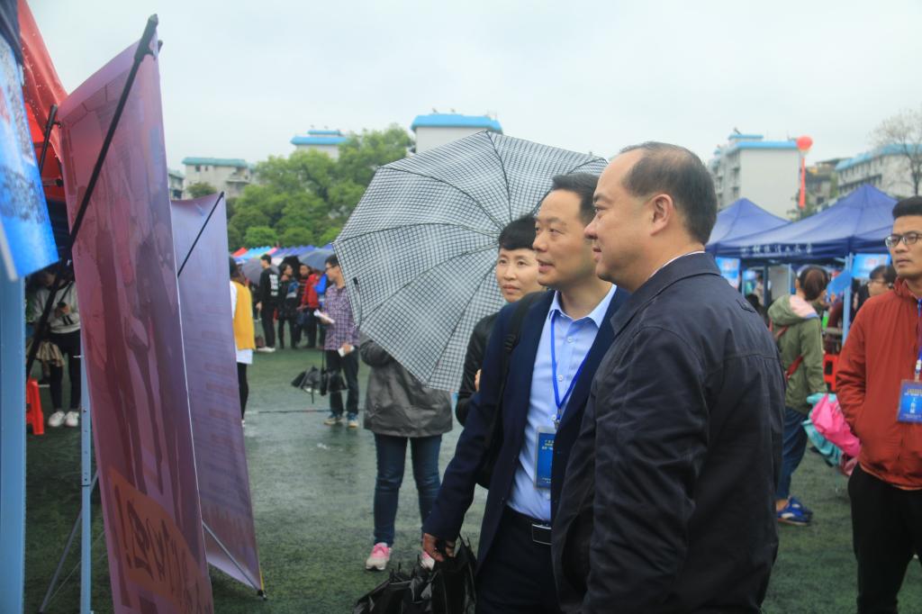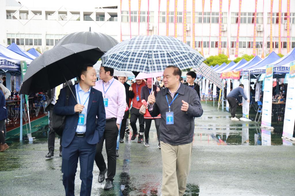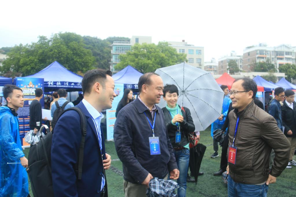 3月17日,2018届广西高校毕业生双选会暨beats365(中国区)-唯一官方网站春季双选会在我校屏风校区运动场隆重举行。学院党委书记周章明、院长连漪、副院长蒙永亨、副院长李超玲、学工组长沈菲菲、院行政办主任李业正以及各年级辅导员冒雨亲临本次双选会现场,与用人单位招聘代表亲切沟通交流,了解用人单位对人才的需求情况以及当前就业形势。与此同时,我院领导还与2018届毕业生亲切交谈,悉心询问其就业意向、就业情况,并为其提供就业指导意见。
