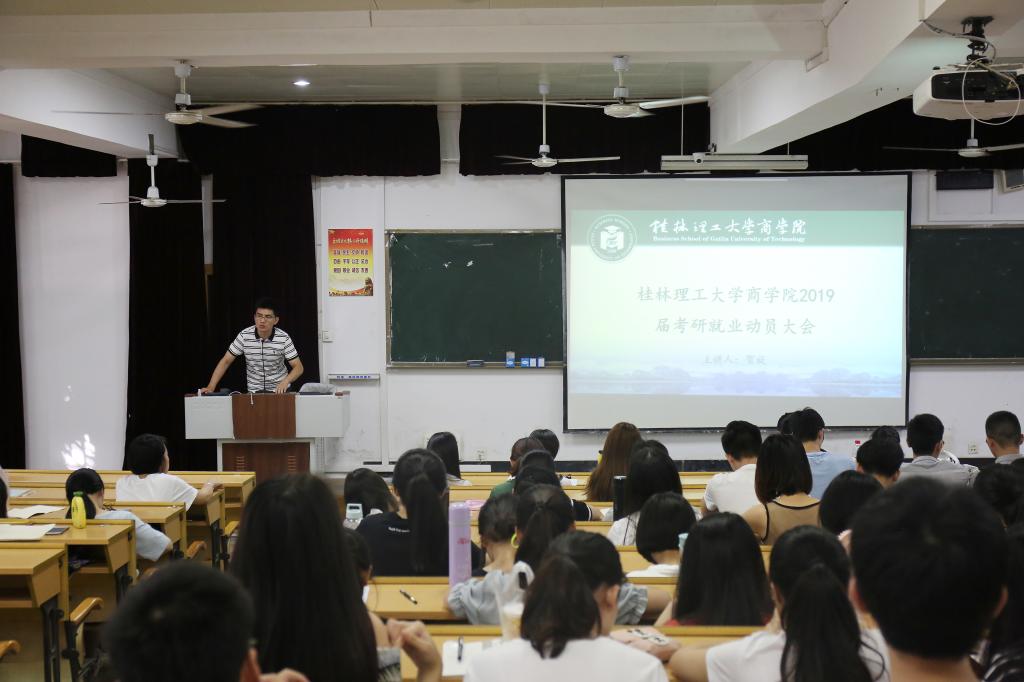 在动员大会上,老师们首先通过近四年全国大学生就业情况的数据分析,给同学们展示了当前全国严峻的就业形势,提醒学生要树立高度的危机意识,早做计划,为明年的毕业做好充分准备。其次,进行了考研动员。一方面老师们通过大量数据和事实说明了研究生学历相对本科学历在福利待遇、发展前景、就业层次、各地方人才引进政策等方面具有较大优势,激发学生对考研的兴趣。另一方面对考研压力、优惠政策以及录取率等学生普遍关心的问题,进行了逐一说明和解答,打消学生考研疑虑。最后,进行了就业动员,老师们建议已经决定直接就业的同学从眼观世界、内省自身、人职匹配三方面着手准备:眼观世界,从宏观、中观、微观三个层面上,了解社会经济、行业前景、企业发展,做到顺势而为;内省自身,从兴趣、性格特点、价值观三个方面深入反省了解自己,结合自身性格特点和价值取向,选择合适的行业与就职企业;人职匹配,通过对目标岗位的了解,有针对性的准备自身知识、技能与综合素质,做到个人与岗位的匹配。