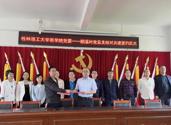 商学院党委副书记、副院长(主持工作)李雷,灌阳县顺溪村党总支书记陈勇分别代表院地双方签订合作协议。学校党委常委、总会计师曾繁荣,商学院党委书记白永生,商学院党委副书记、副院长(主持工作)李雷,灌阳县顺溪村党总支书记陈勇、副书记范培勇,驻村第一书记单江涛共同为“党建引领乡村振兴共建单位”揭牌。
