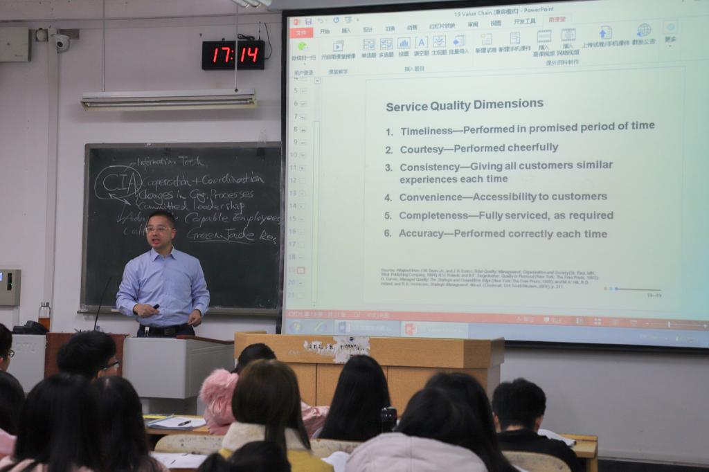 李隽波教授为了将学生培养成为既有扎实的专业知识又具备东西方管理思维的现代化企业管理人才,他一直致力于工商管理本科、硕士课程的双语教学工作。在双语教学中,他基于构建主义理论和系统论,注重双语学习中情境、协作、会话和意义建构的四大要素,发挥双语教学系统中主体与客体的主观能动性和协调互动作用,通过先进的教学介体、方法、手段,构建双语学习情境,培养和提高学生的协作与会话能力,促进学生双语学习的意义建构。选用国外著名的Stephen P. Robbins和Mary Coulter英文原版影印教材《Management》,采用统一教案,规范双语学习流程。设计多媒体课件,运用课程网络教学系统,帮助学生在线学习,设计课程作业(coursework),使学生适时运用理论知识解决实际问题,提高学生们的协作能力,解决理论与实际相结合的难题。经过不懈努力,李隽波教授负责的《管理学》(双语)课程获得了国家双语教学示范建设课程立项,这是我校高等教育质量工程建设中取得的重要标志性成果之一。