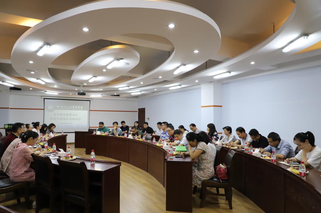 在第36个教师节来临之际,我院组织开展了庆祝第36个教师节教师代表座谈会。9月9日下午,学校总会计师曾繁荣、学院党委书记白永生、党委副书记沈菲菲、以及教授代表、新进教师、党外人士、离退休教职工代表、各教研室主任、学生代表座谈会参加了座谈会。