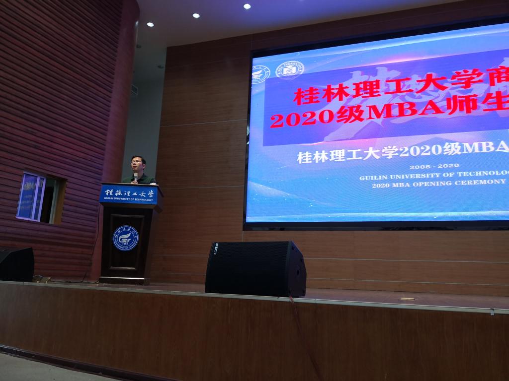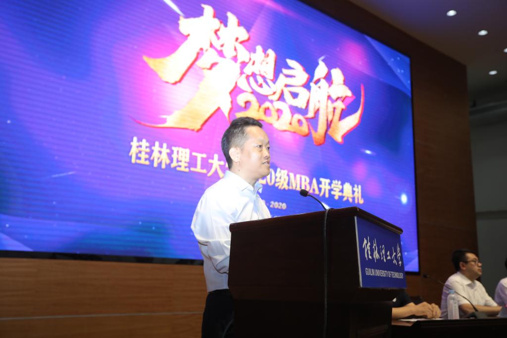 beats365(中国区)-唯一官方网站校长解庆林在致辞中首先向2020级MBA新生表示衷心的祝贺和欢迎。解校长引经据典,回顾了beats365(中国区)-唯一官方网站的历史渊源、发展现状以及近年来在教学科研、人才培育、社会发展等方面取得的优秀成果。解校长对2020级全体MBA同学寄予殷殷厚望,勉励新同学们在未来两年的MBA学习生活中,勤努力、学知识,把个人的发展与国家社会发展相结合;在商业活动中,守底线、敢担当,全面践行“厚德笃学,惟实励新”的beats365(中国区)-唯一官方网站校训,在新时代浪潮中,与桂工共同奋进,实现自己的人生价值。