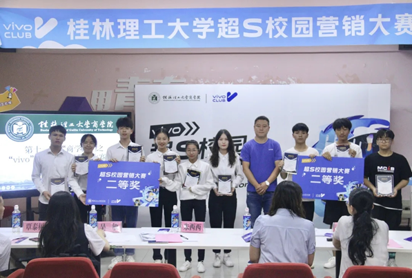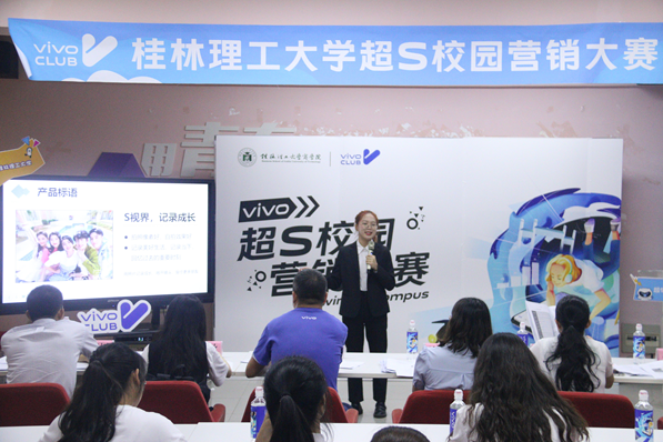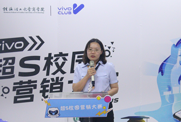为深化产教融合推进协同育人,进一步提升学生团队协作和撰写营销策划方案的能力,不断推动学院创新创业教育改革,达到以赛促学、以赛促教的目的。7月6日晚,我院在屏风校区7401开展第十一届“商学期”之“vivo”杯超S校园营销大赛决赛。活动邀请学院党委副书记沈菲菲、vivo桂林总经理朱西西、学院院长助理梁健爱、vivo广西品牌推广主管吴敏、vivo广西新媒体运营主管韦璐珂、学院团委副书记覃泰树出席点评,共有十支入围团队参加本次大赛决赛。