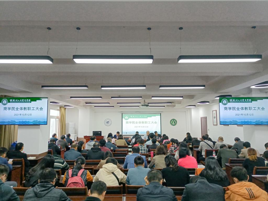 2021年10月12日下午,学院在7309会议室召开了全体教职工大会,学院全体领导班子和全体教职工参加了会议,会议由学院副院长蒙永亨主持。