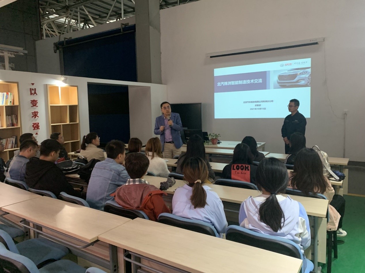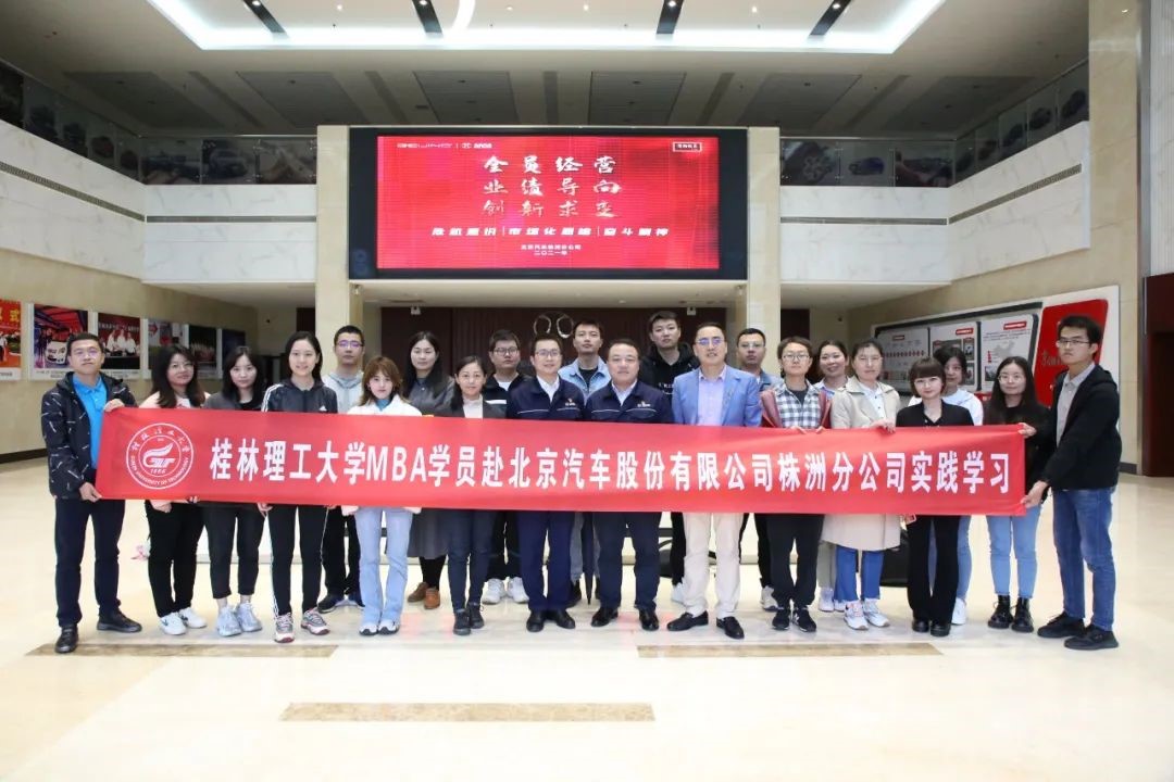 走进名企.实践学习。10月14日-10月15日,在MBA教育中心主任马小龙教授、人力资源教研室主任沈鸿教授的带领下,2021级MBA学员走进桂工校友企业——北京汽车股份有限公司株洲分公司,实地感受不一样的移动课堂。