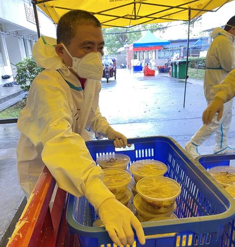 疫情不退,我们不归——这是商院教师的铮铮誓言。三尺讲台前,他恪尽职守;抗疫战场上,他亦未缺席。他虽是一名普通教师,但任劳任怨,兢兢业业,“战役”打响,率先响应,“疫”往无前,摇身转变为疫情防控的“老志愿者”,搬运物资、维持秩序、爬楼送餐送水果......不遗余力的以自己的微薄之力守护着千家万户的孩子。从5栋到7栋、从一楼到七楼,他用自己忙碌的身影绘成一道靓丽的风景线,用责任与担当谱写着商院人动人的抗疫乐章!