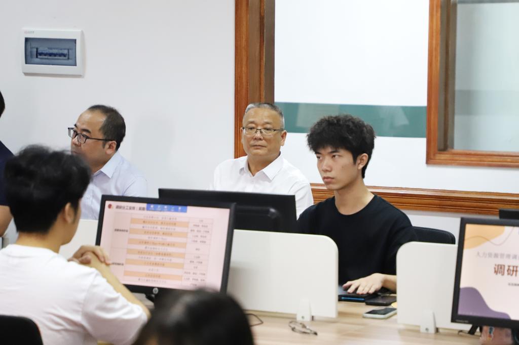 王敦球参观了我院教学实训实验室,听取覃燕、李沐天、林西等三位老师共同讲授的《人力资源调查与her实训》,从教师素养、教学内容、教学实施、教学效果等方面对三位老师进行课堂教学质量评价,充分肯定了老师们的教学态度和教学水平,并从丰富教学设计、课程思政建设等方面提出希望和要求。