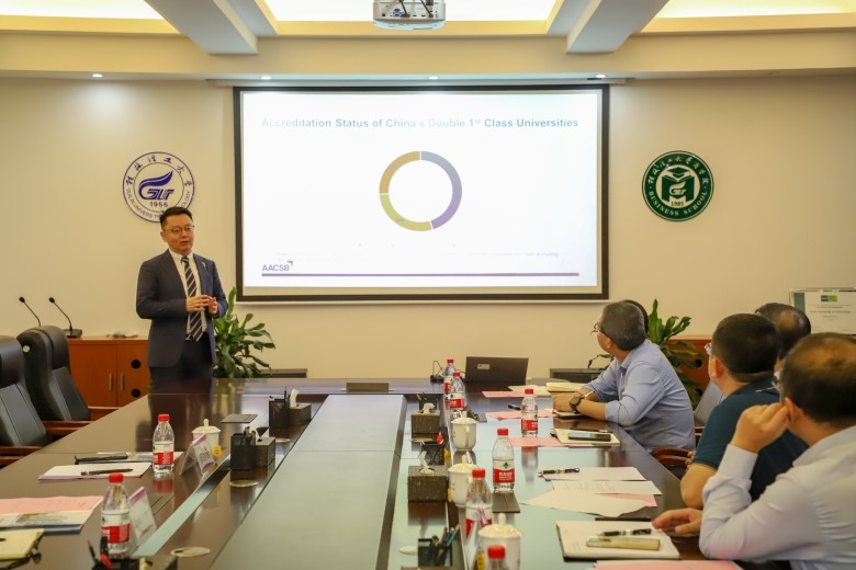 10月19日下午,国际商学院协会(AACSB)执行副总裁、全球首席执行官、亚太区执行董事Geoff Perry博士和东亚区负责人徐国栋先生访问我院,在屏风校区商学院7206会议室就AACSB国际认证的相关事宜进行交流座谈。学院党委书记白永生、院长李雷、副院长王兴中、院长助理罗薇,以及专业学位教育中心、教研室、实验中心、学工负责人参加了座谈,座谈会由白永生书记主持。