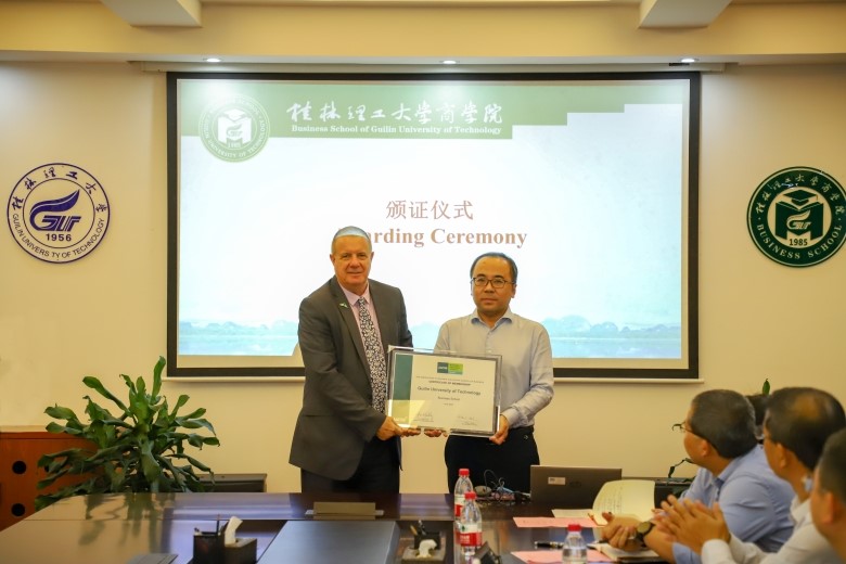 Geoff Perry副总裁代表AACSB向我院颁发会员证书