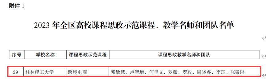 近日,自治区教育厅公布了《自治区教育厅关于公布 2023 年全区高校课程思政示范课程和课程思政示范基层教学组织名单的通知》,我院邓敏慧副教授负责的《跨境电商》课程荣获自治区级课程思政示范课程,获评授课教师和教学团队被认定为自治区级课程思政教学名师和教学团队。