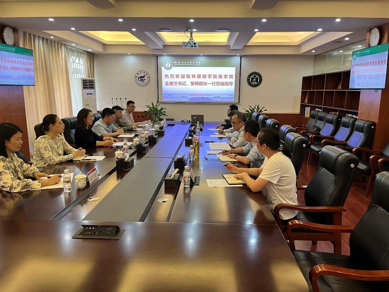 5月7日下午,桂林旅游学院商学院党委书记金美兰、院长张杨一行来我院调研交流。学院院长李雷,党委副书记、纪委书记饶蠡,副院长王兴中、市场营销系、MPAcc中心相关负责人参加座谈会,会议由李雷主持。