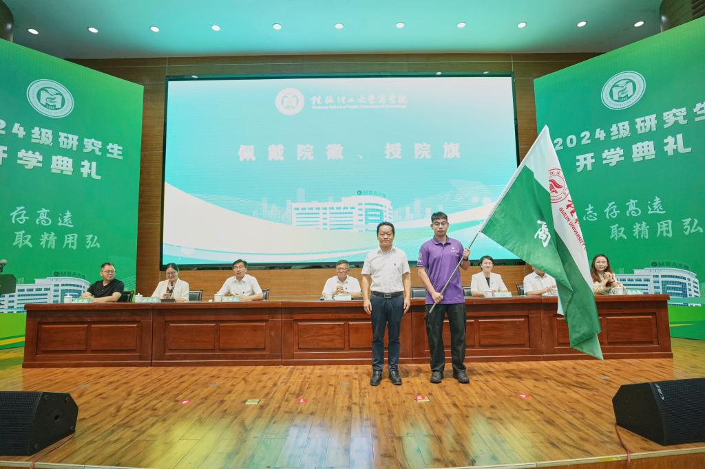 学校党委书记邓军,党委常委、总会计师曾繁荣,校长助理、研究生院院长、学科建设办公室常务副主任、南宁分校党委副书记、校长张树光出席典礼。研究生工作部、学院相关负责人,导师代表、校友代表和全体2024级研究生参加典礼。学院党委书记白凌婷主持典礼。