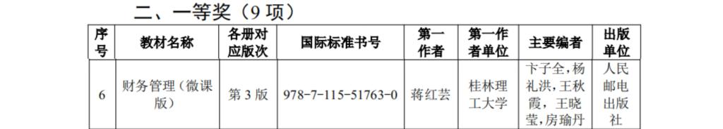 近日,自治区公布了2024年广西普通本科高校优秀教材评选结果,我院蒋红芸教授主编的教材《财务管理》(微课版)荣获一等奖。