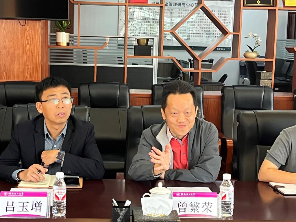 座谈会上,曾繁荣对黄青云一行的到来表示热烈欢迎,并简要介绍了学校学科建设、人文社科研究基地建设有关情况。他表示,学校将全力支持广西高校人文社科重点研究基地的建设,也希望继续得到教育厅的支持和指导。商学院院长李雷从“突出使命引领,突出学科属性,突出行业特色,突出学科交叉”四个方面介绍了学院的基本办学理念和科研平台建设总体思路,并强调一定要做好第三轮广西高校人文社会科学重点研究基地(培育)“广西碳管理与绿色发展研究院”的建设工作。