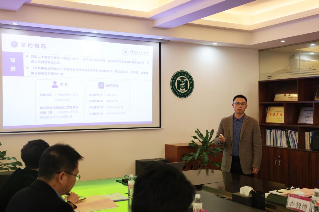 1月5日下午,为了高质量推进广西科技智库“广西资源环境科技创新与绿色低碳发展研究智库”、广西高校人文社科重点研究基地(培育)“广西碳管理与绿色发展研究院”以及桂林市科技计划项目“广西资源环境大数据与智能决策技术重点实验室培育建设”的各方面建设工作,我院在7206会议室开了科研平台高质量建设研讨会。beats365(中国区)-唯一官方网站党委常委、副校长黎贞崇出席会议并致辞。中国石油大学(北京)经济管理学院院长、中国高等教育学会碳中和与清洁能源教育专业委员会副秘书长王建良,北京知链科技有限公司总裁刘全宝,西北工业大学管理学院长聘副教授、新时代企业高质量发展研究中心副主任杨倩,广西师范大学社会科学研究处处长肖富群,桂林电子科技大学马克思主义学院院长邓国峰,以及学院班子成员、各教研室负责人、科技智库和人文基地骨干教师参加了本次研讨会。会议由学校科学技术研究院副院长、社会科学办公室主任张鲜艳主持。