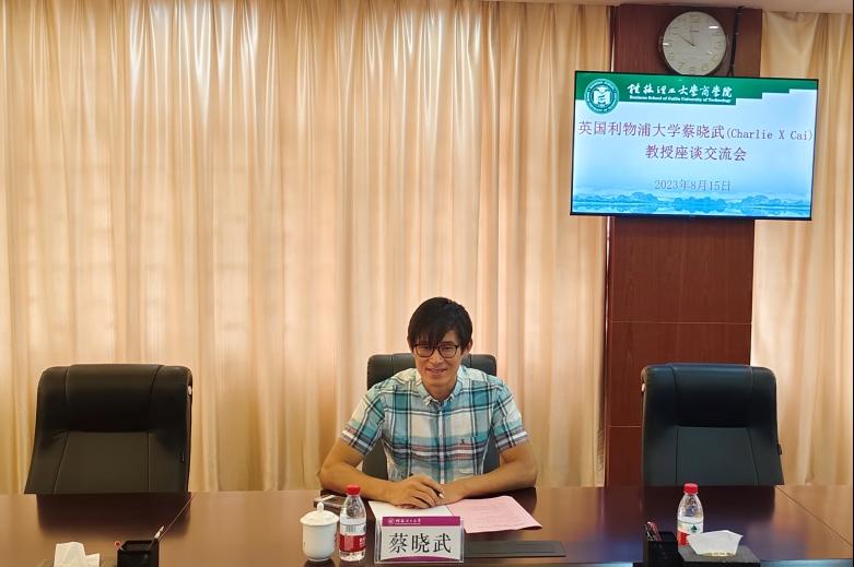 8月15日上午,英国利物浦大学管理学院金融学教授蔡晓武(Charlie X Cai)来访我院,在屏风校区商学院7206会议室进行了座谈交流。学院院长李雷,副院长王兴中,MPAcc教育中心、MBA教育中心、会计系部分老师及在校的研究生参加了座谈,座谈会由王兴中主持。